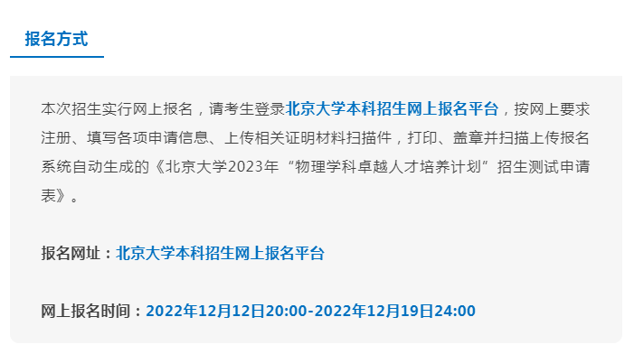 学生需进行网上报名,在报名系统中填写申请表,填写完成后请将申请表进行打印,经所在中学核实加盖中学公章,扫描上传后提交(申请材料无需邮寄)。