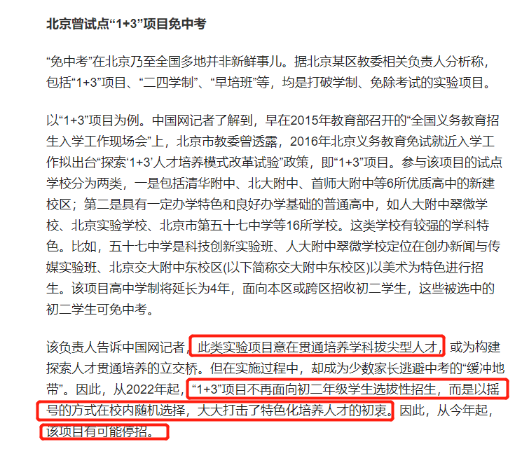 ]]>1+3项目是中招入学途径的一种,孩子在初二时可免中考提前锁定高中校。2023年1+3项目变动较多,如不再摇号、实际区级报名时间不统一、报名条件放宽条件。