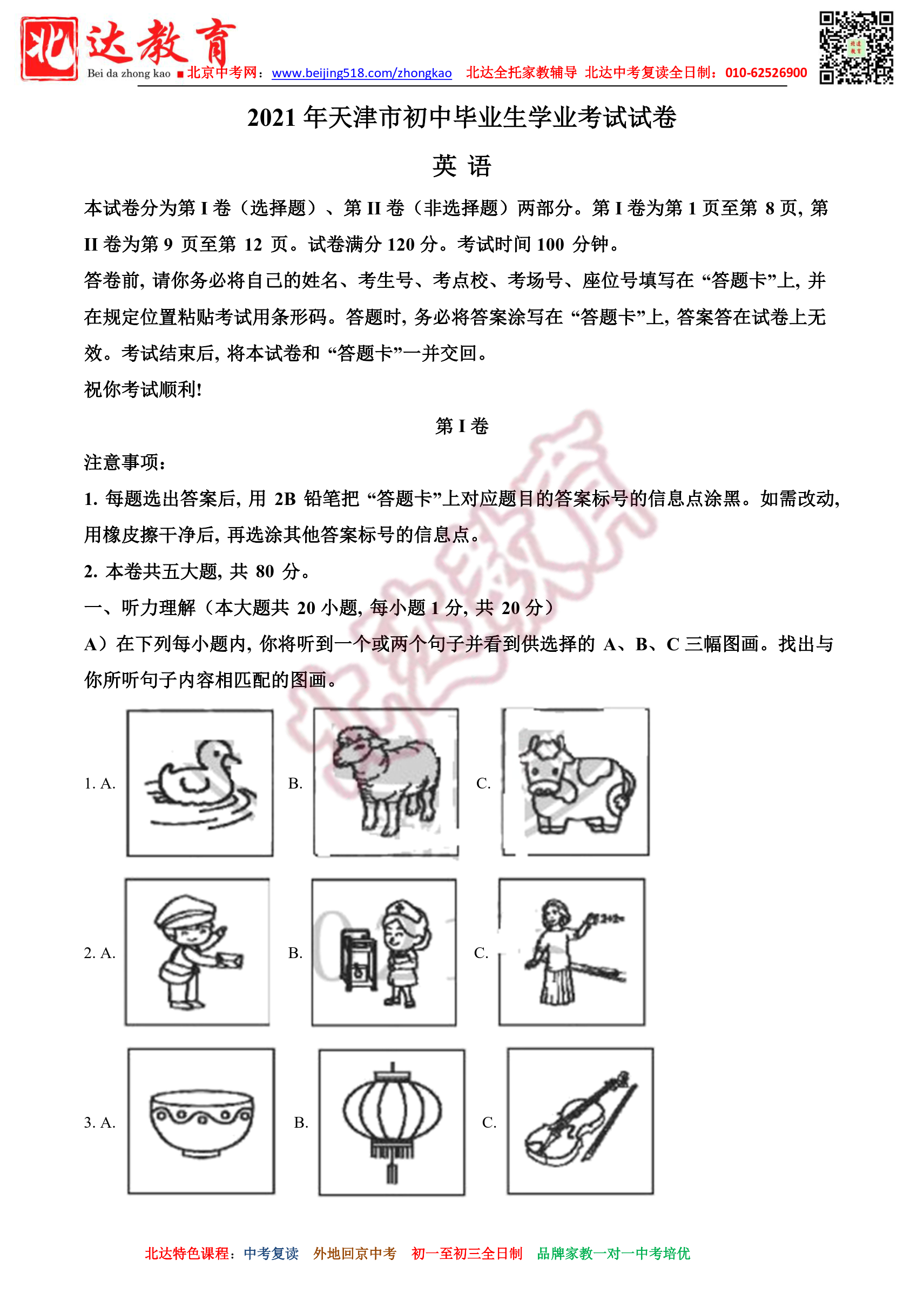 2021年新疆自治区及兵团中考英语试卷(学生版)