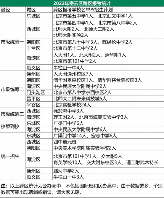 | 2022年北京18区跨区报考学校名单&招生计划统计汇总 | |