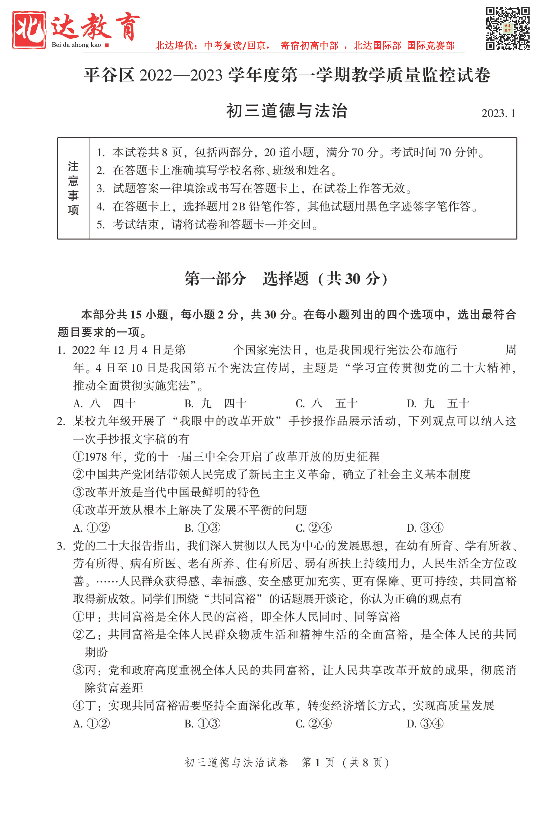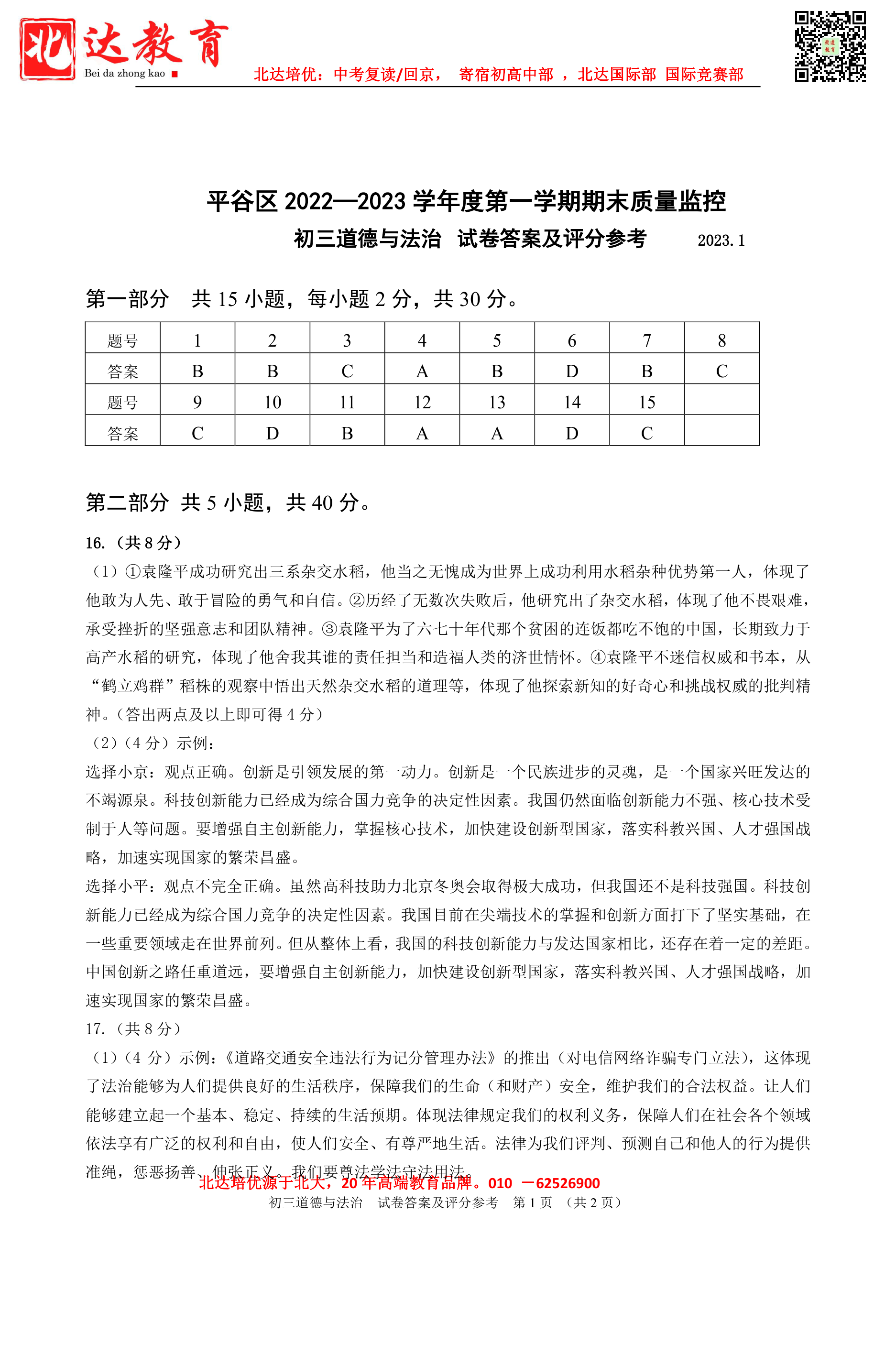 相关阅读:2022-2023学年北京各区初三(上)期末试卷&答案汇总