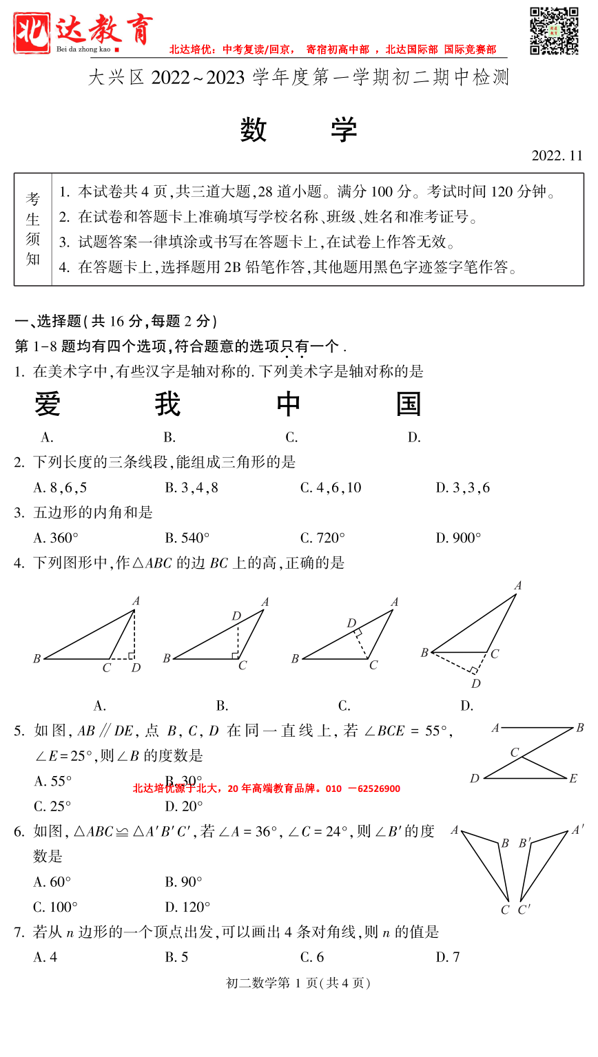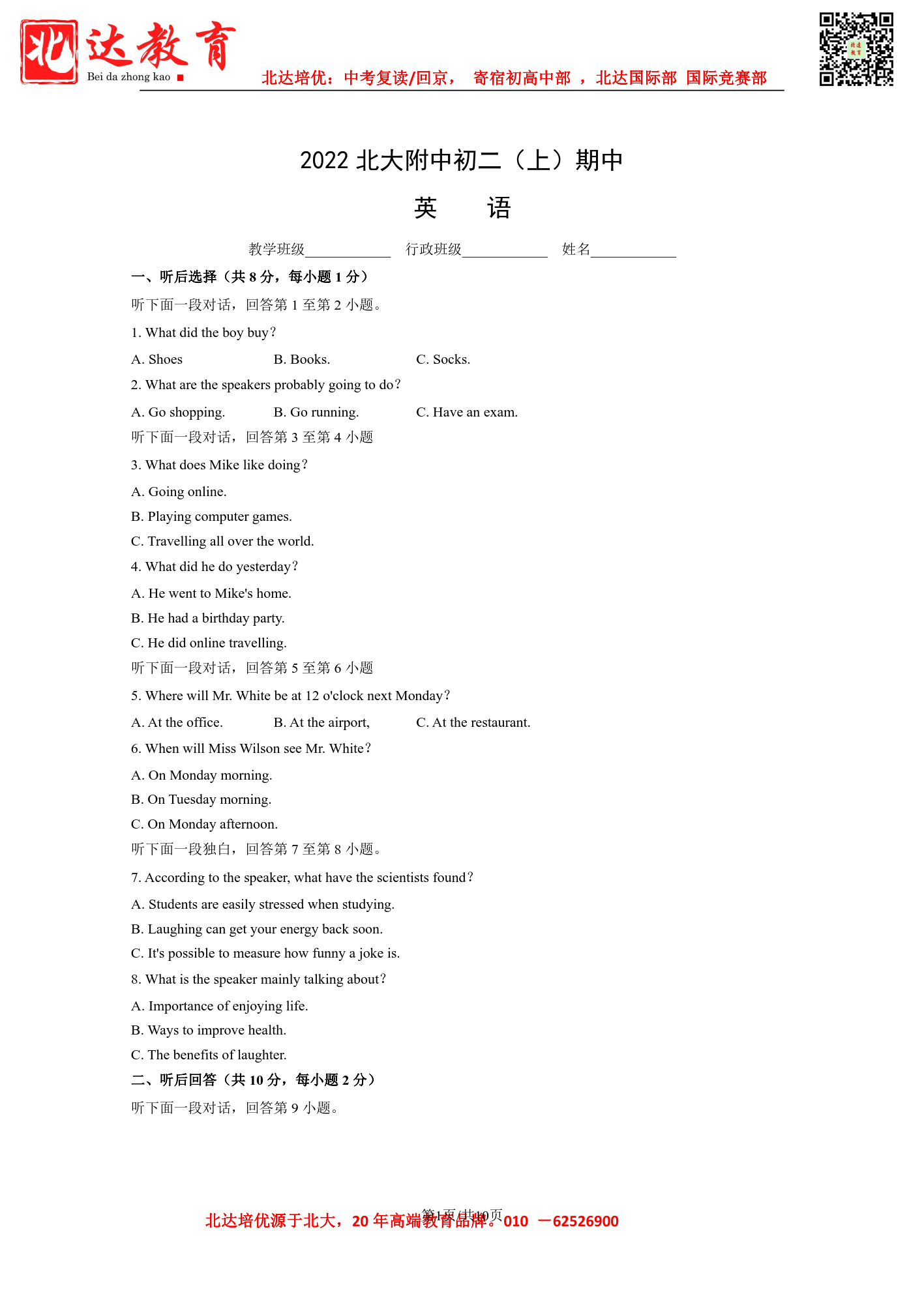 相关阅读:2022北京各区初二(上)期中考试试题及答案 汇总