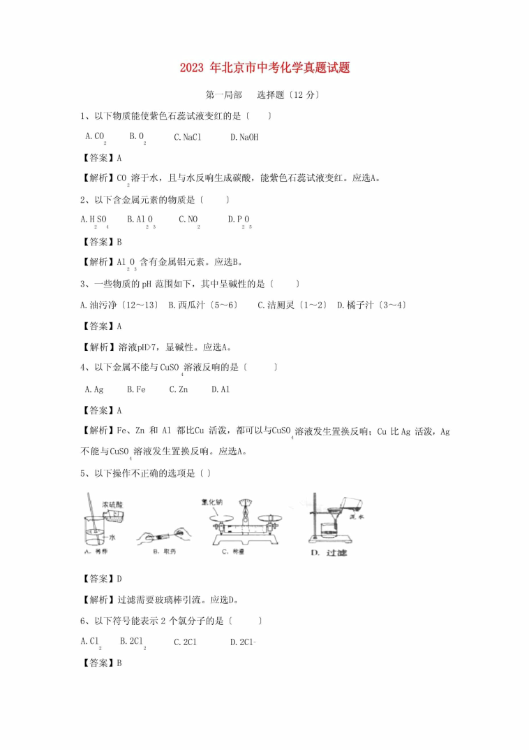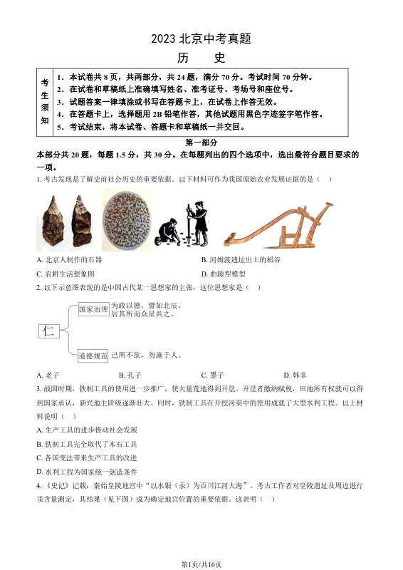 相关阅读:2023年北京中考真题及试卷评析汇总