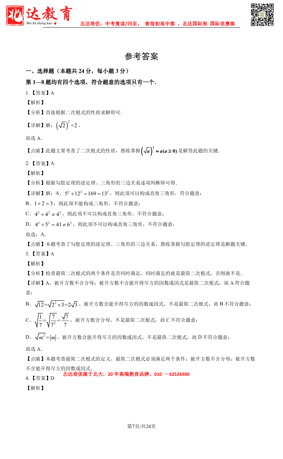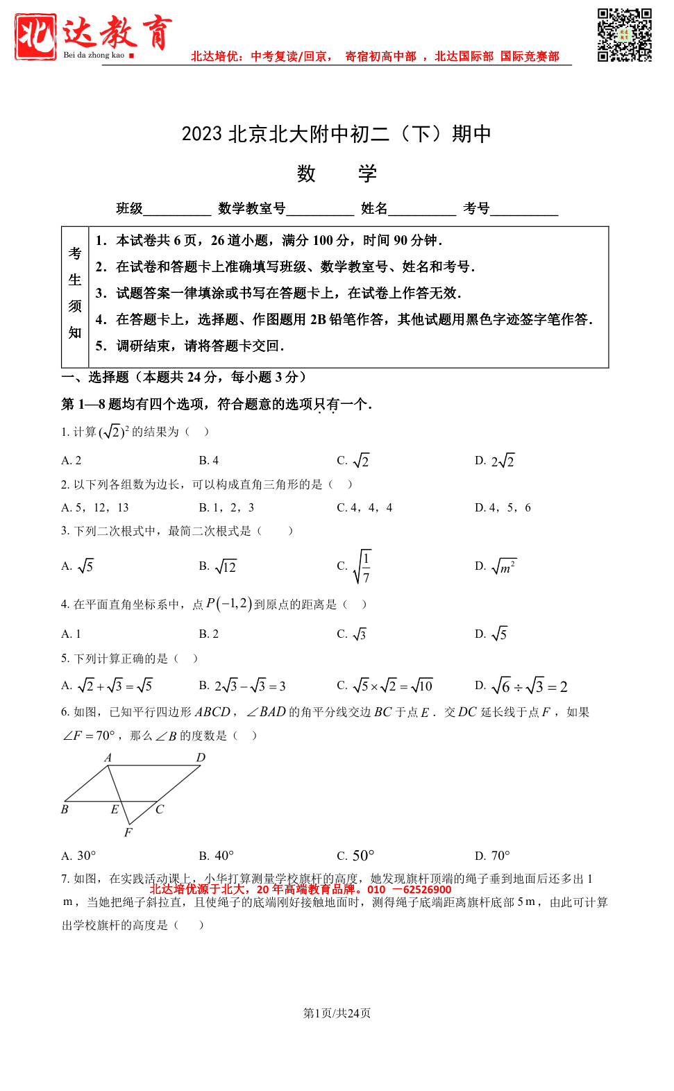 2023北京各区初二下期中试卷&答案汇总电子版,可加微信进群免费获取