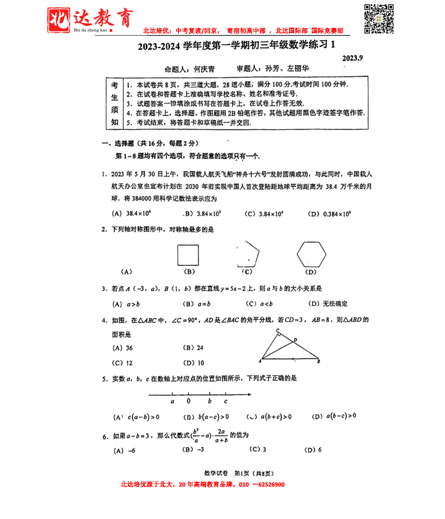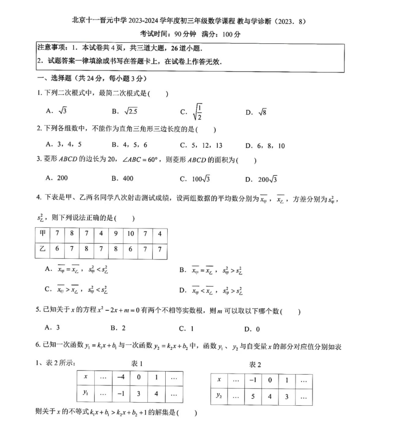 | 2023北京新初三开学测试题及答案汇总 | ||