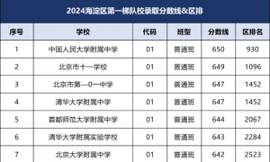 2024北京中考海淀区高中‘三大梯队’排名新鲜出炉!小编为大家梳理了相关内容和信息,帮助大家做择校参考,一起来看~ 1第一梯队(六小强) 温馨提醒: 1.以上各校分数线均由热心家长...