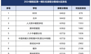 2024北京中考朝阳区高中‘三大梯队’排名新鲜出炉!小编为大家梳理了相关内容和信息,帮助大家做择校参考,一起来看~ 1第一梯队(630分以上) 2024朝阳区第一梯队依然以“六小龙...