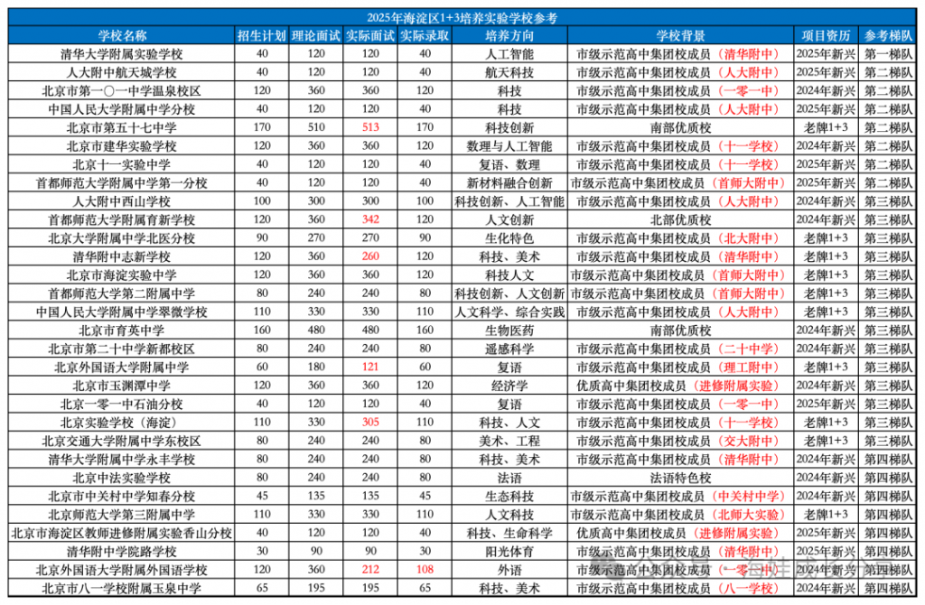 北京实验学校(海淀)2025年进入“1+3”培养实验学生名单