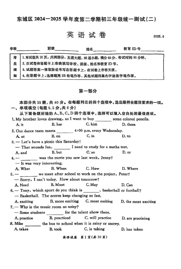 北京东城2025初三二模英语试题及答案 //m.admw360.com/zhongkao/90334.html Thu, 05 Jun 2025 03:20:53 +0000 //m.admw360.com/zhongkao/?p=90334 2025北京各区初三二模已陆续开始,admw360教研组整理了北京东城2025初三二模英语试题及答案,分享给大家。
