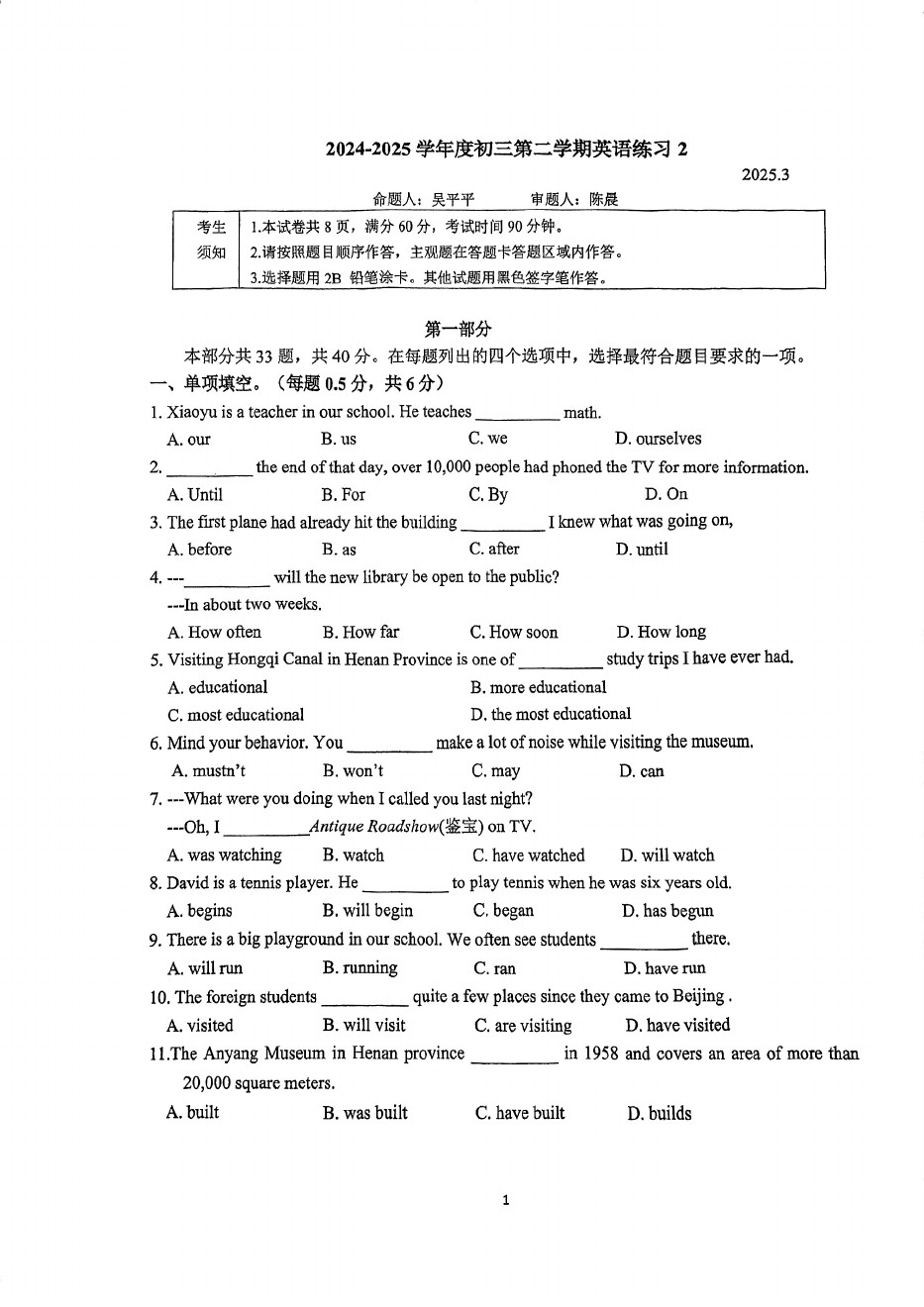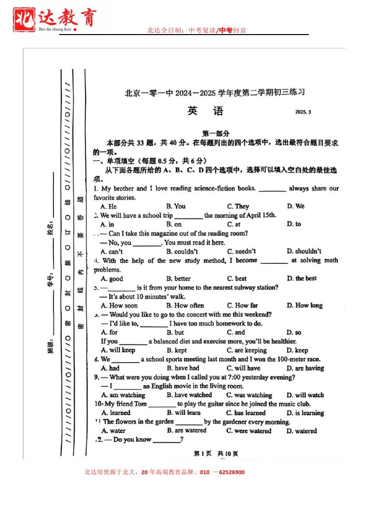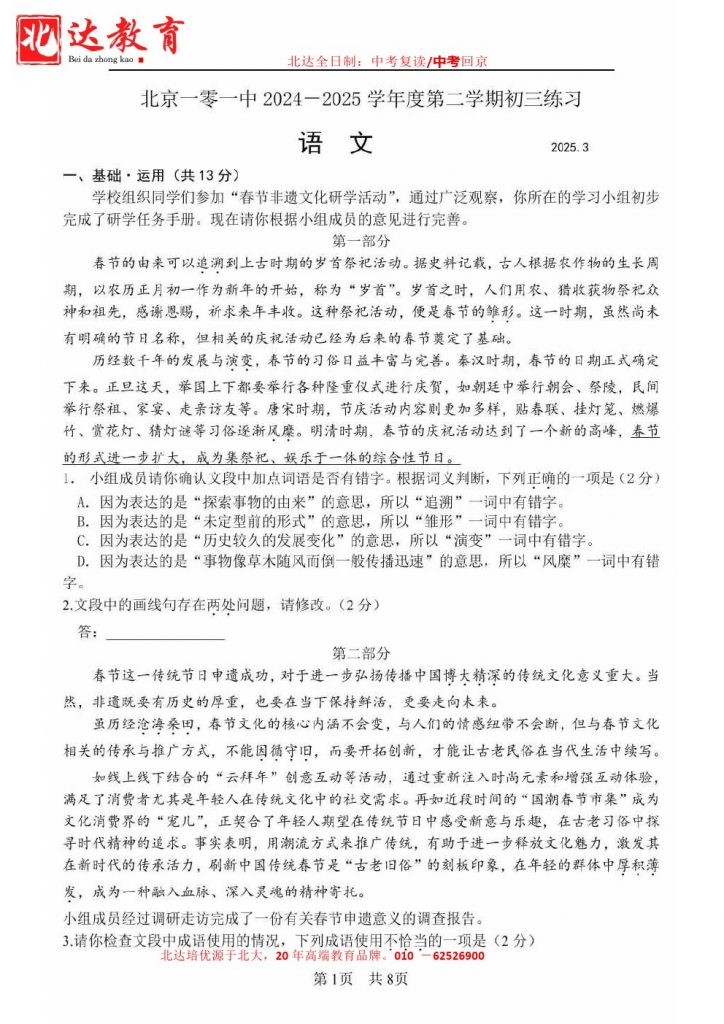 相关推荐:2025年北京初三3月月考试卷及答案汇总